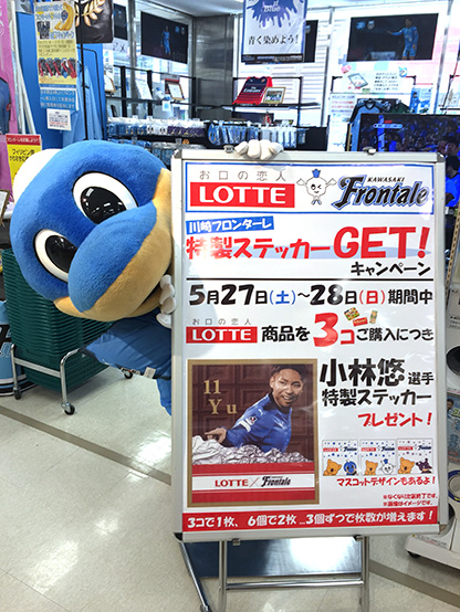 さらに、5月27日(土)、28日(日)でロッテ様の拡販イベントも開催します! このロッテ拡販イベントは川崎市内のイトーヨーカドー4店舗(溝ノ口店、武蔵小杉駅前店、川崎港町店、川崎店)で実施し、各店舗でロッテ製品を3個ご購入で特製選手ステッカーをプレゼント! 店舗ごとに選手が違うので、ぜひ全部コンプリートしてください!