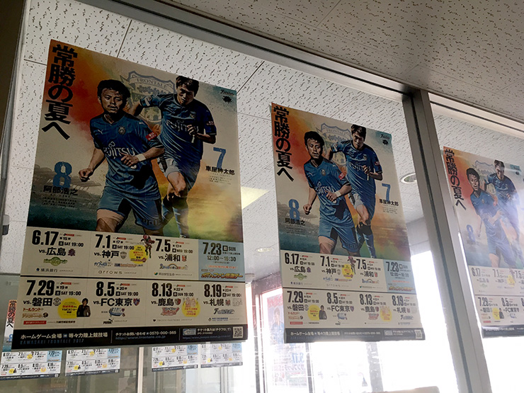 アベちゃんこと阿部浩之選手は新加入でいきなりの起用ですが、川崎市民にアベちゃんの存在をしっかりアピールできちゃう絶好の機会です。きっと本人もホームゲームで等々力へ行く途中にバスの中から掲出してくださっている様子を目にすることがあるかと思いますが、「オレ、めっちゃ貼られてる!」とおそらく驚くと思います(笑)