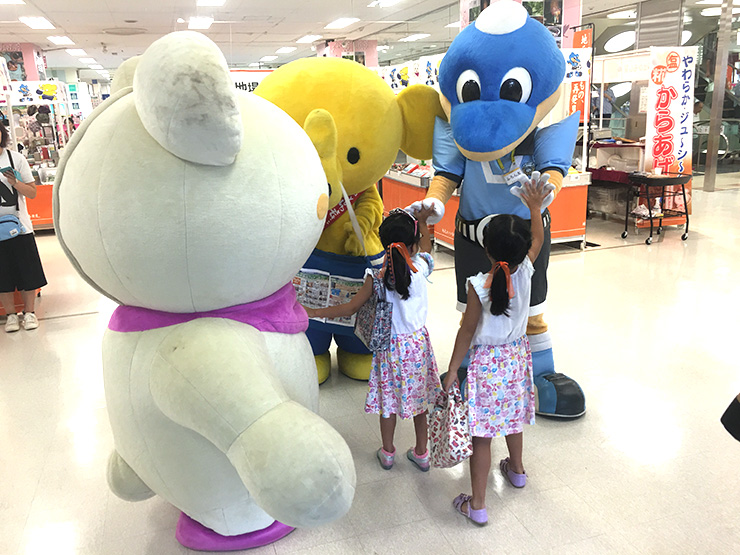 当日のイベントでは、ふろん太だけでなく、「Buyかわさきキャンペーン」のキャラクターでもある「ばいぞーくん」と「なかはらエコ推進大使」である「ロジーちゃん」も遊びにきており、ふろん太と一緒に川崎市商品フェアを盛り上げてくれました!