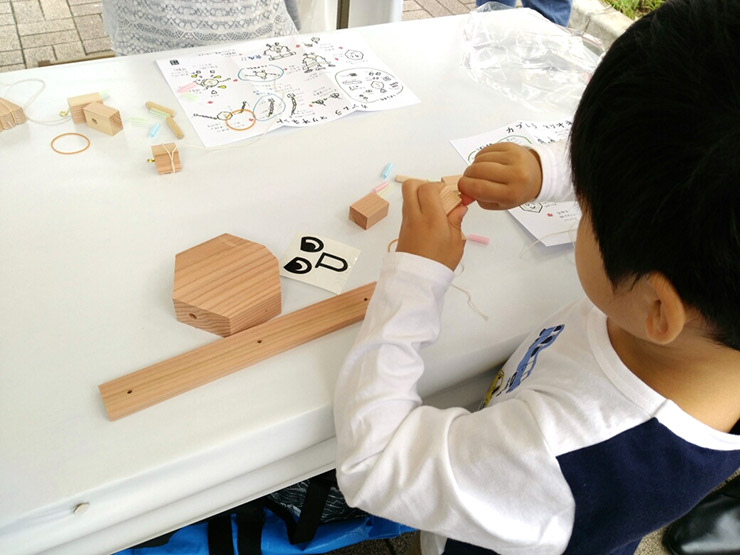 等々力のイベントでもお世話になっている中原工房さんのブースでは、木製の等身大カブレラ色塗りとカブレラマリオネット作りが体験できました。見てください、このビフォーアフター!!いや~色塗りに参加した子どもたちの創造力に脱帽ですね! カブレラマリオネット作りでは皆さん真剣な顔で黙々と作業に打ち込んでらっしゃいました。