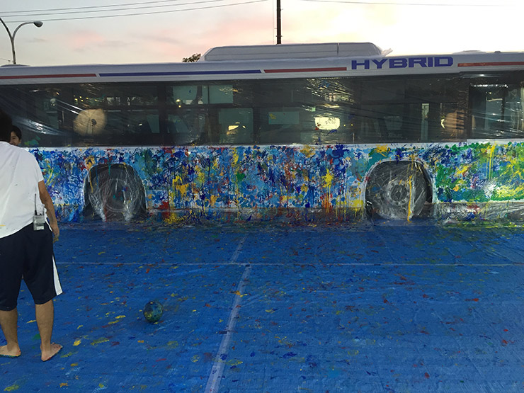 今年の目玉は「Paint it Blue Bus!!」サッカーでラッピングバスを作るイベントです! 今回東急バスさんにご協力いただきましてバス1台の側面を丸ごとパレットにしてしまいました。
