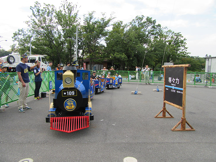 そして、この試合のエキサイトマッチスポンサーの東急グループのイッツコムさんが、この日限定のトロッコ電車「コムゾートレイン」を走らせてくれました! こちらのブースも子ども達から大人気でしたよ。