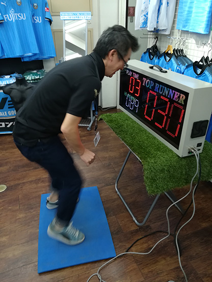 さらにこのグッズ売店では、フロンターレットやガラポン、ちょっと変わった“その場足踏みカウンターTOPRUNNNER”を使用した「声援くじ」というイベントを実施し、みなさんと楽しんでグッズ販売も実施しました。