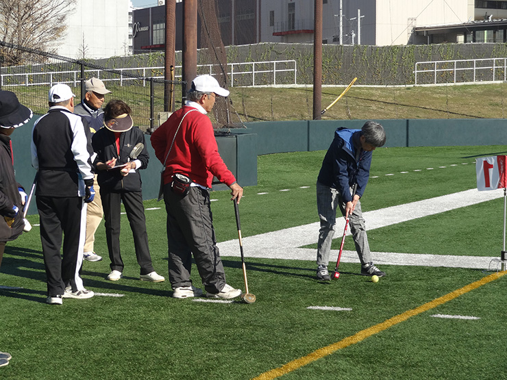 今年も富士通スタジアム川崎で安定した人気を誇ったのは50歳以上の方であればどなたでも参加可能な「グラウンド・ゴルフ大会」です。毎月たくさんの愛好者が富士通スタジアム川崎に集い、親交を深めています。