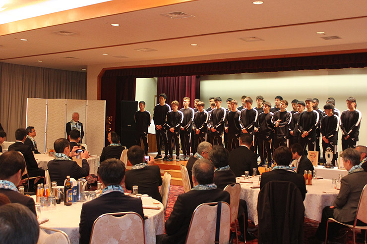 最後は鬼木監督から「本当にこのような素晴らしい、そして温かい祝賀会を開いていただいてありがとうございます。我々のスタートがいつもここ綾町でスタートできることがうれしく思いますし、また選手のコミュニケーションを一番大事にしている中で、ここのみなさんのサポートを受けながらできることをうれしく思っています。そして、私たちの目標となるのはやはり連覇というもので、皆さんに恩返しできると思いますし、また昨年悔しい思いをしましたACL、ルヴァンカップ、天皇杯とまだまだタイトルを取るものがたくさんあります。それができる可能性がある選手が揃ったので、残りの時間を楽しみながら、なおかつ皆さんの期待に応えられるように頑張っていきたいと思いますので、今後ともよろしくお願いします」と挨拶をし、最後は出席者全員で万歳三唱を行い優勝祝賀会はお開きに。