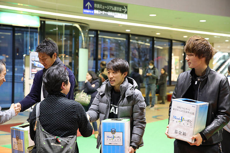 初日は毎年恒例の「選手チャリティトークショー」を開催。今年はアカデミー出身の安藤・板倉・三好の3選手が登場(この後日、板倉選手と三好選手の期限付き移籍が発表されました…)。普段、聞かれない話もあって楽しいひと時でしたね。ご参加いただいた方は分かったと思いますが、安藤選手って、いい奴ですよね(笑)。2018シーズンは脇坂選手も加入して、アカデミー出身者が多くなってきました。これからはアカデミー出身選手も要チェックでお願いします!
