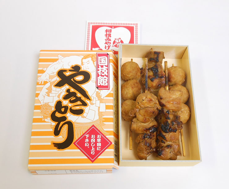 イッツァスモウワールド恒例の「両国国技館名物グルメ」も販売します! 毎回大人気の「やきとり」は両国国技館の地下にある工場で作っていて、「冷めてもおいしい」と大評判。スポーツ観戦にはうってつけの逸品ですよ。5本入りで650円、限定600食。売り切れ必至ですのでお早めに!