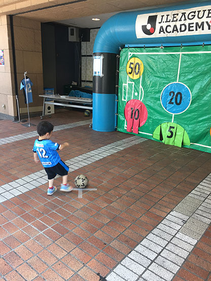 フロンタウンにてフットサルをした帰りの大人から地元のサッカー少年団で練習した帰りの小学生までいろんな方に挑戦いただきましたが、コンフィットTシャツを手に入れたのはフラッと立ち寄った子連れのお父さん。我々スタッフもまさかこの方が入れるとは思っていませんでしたので正直ビックリしました…(笑)