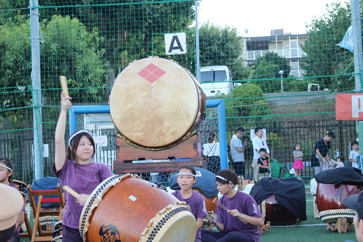 夕暮れからはまず、恒例の太鼓体験会&生演奏。