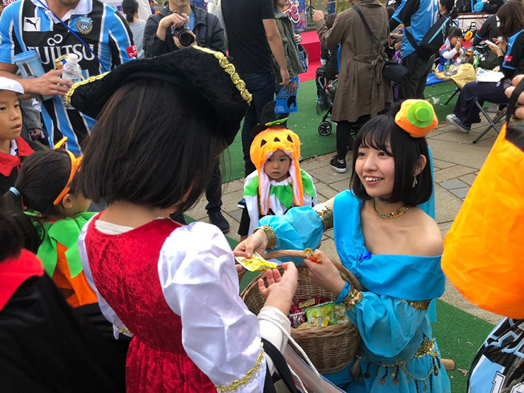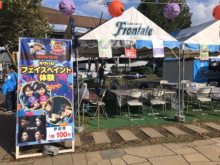 本格的な仮装をして来てくださるサポーターが年々増えてきている等々力ですが、「フェイスペイントを会場で施して初めて私のハロウィン仮装が完成するの!」と高いモチベーションでブースにお越しいただいた方もおり、ゾンビ風メイクを見事完成させていました。また今回は、陸前高田市出身で第一回川崎修学旅行に参加していたフロンターレスタッフがペインターとして活動しました。この試合は陸前高田から川崎修学旅行で多くのサポーターが来場していたこともあり、各所で感動的な再会が見られ、フロンターレのMind-1活動がもたらした光景に、スタッフ一同感激しておりました…。スポーツの持つ力はすごいですね!ご参加いただいた皆さん、ありがとうございました!