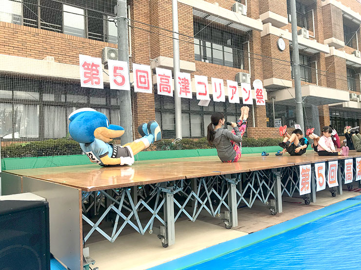 ステージでは和太鼓演奏や舞踊など様々な催し物が行われていて、ふろん太もいくつか参加しました。新運動場の竣工セレモニーのテープカットのお手伝いや、昨年に引き続き参加したヨガ教室では、体がプルプルしながらも何とか子どもたちと一緒にヨガのポーズを決めていました(笑)
