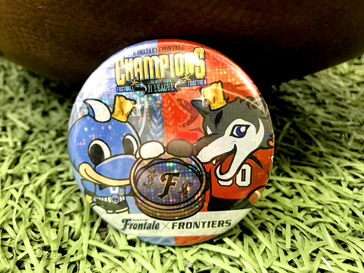 川崎フロンターレ後援会員の皆様にも来場記念として「川崎フロンターレ×フロンティアーズ チャンピオンコラボ缶バッチ」をプレゼント。この日しかゲット出来ないオリジナル缶バッチなので、大勢のフロンターレサポーターが缶バッチ目当てにご来場いただきました。