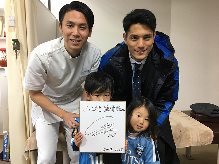 最後には、寒い中、集まっていただいた、ファン、サポーターの皆様に向けてサイン&写真撮影会を実施! 即席ながら老若男女たくさんの方と触れ合えることが出来ました。最後にマナブから「初めての商店街挨拶回りで、自分が生まれ育った地元の鹿島田で実施できたのは恥ずかしい部分もあったが、到着時から沢山のサポーターに出迎えていただき、とても嬉しかった。去年試合に出れなかったことを考えると、今年は頑張らないといけないと思うので、頑張りたいと思います!!」と2019シーズンに向けてとても力強いコメントをいただきました!!