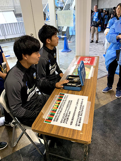 続いての業務はイベント補助。この日は、あいにくの雨でメインスタンド2階のイベントスペースで行われていたイベントに参加。