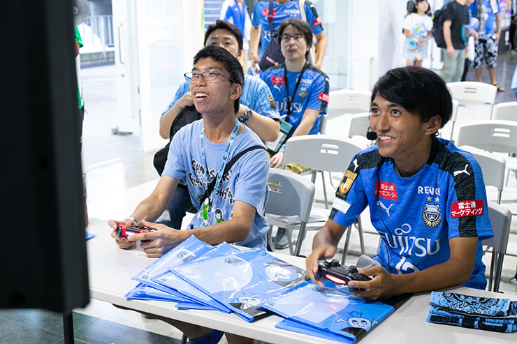 コナミ『ウイニングイレブン2019』のブースではフロンターレの選手で実際にプレイが体験でき、各々のフロンターレスタイルでプレイして楽しんでいました。