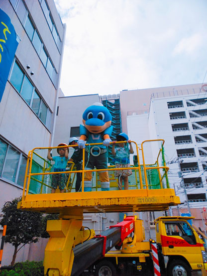 他にも高所作業車体験ではお子さんと一緒に乗らせてもらい、ご満悦の様子。下にいる方々に「ふろん太~」と呼ばれると手を振って応えていました!