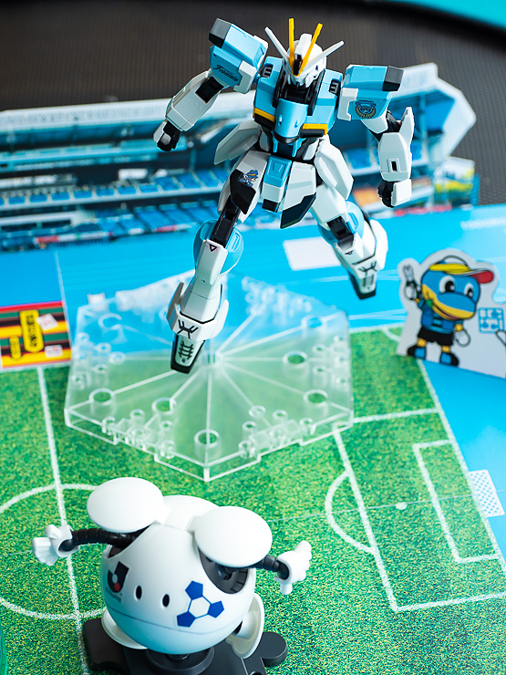 我らが聖地・等々力に立つ青いガンダムはさらに最高!「こいつ....動くぞ」をやるも良し、ライバルチームのガンプラと並べて対決させるも良し。神奈川ダービーも多摩川クラシコも〇〇エキサイトマッチも思いのままです。あなたのガンプラも完成したらSNSなどでお披露目していただけると嬉しいです。(ハッシュタグ: #frontale #gunpla #フロンターレ #ガンプラ など)