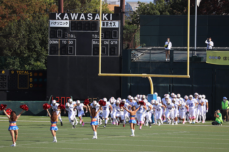 10月24日。前日とは打って変り、朝から秋らしい日差しが降り注ぐ中、いよいよ富士通スタジアム川崎の「顔」ともいうべき「社会人アメリカンフットボール秋季リーグ戦」トップカテゴリー「X1 Super」が開幕し、富士通スタジアム川崎では「東京ガスクリエイターズVSパナソニックインパルス」、「富士通フロンティアーズVSノジマ相模原ライズ」の2試合が行われました。
