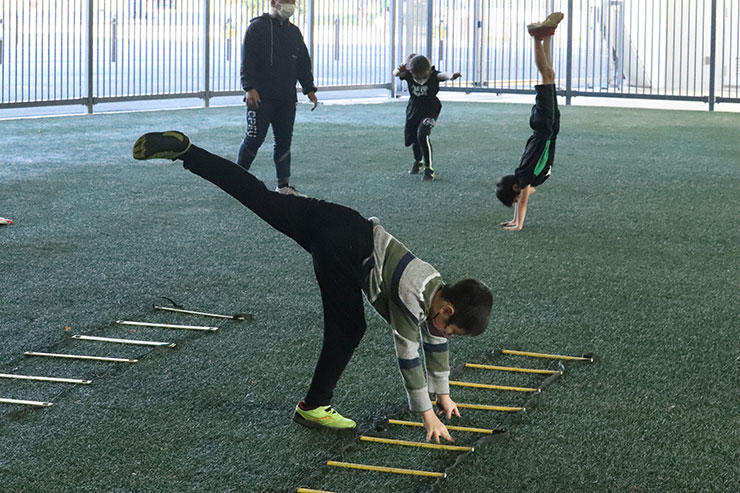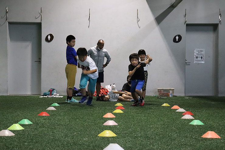 続いて足の動かし方を覚えるためのミニハードルを使用したトレーニング。