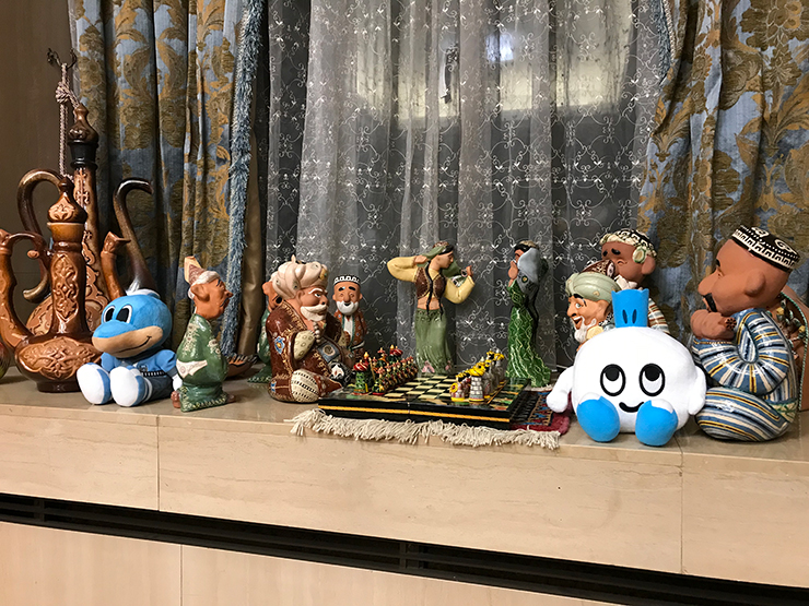 ウズベキスタン大使館からは、スタッフとふろん太が生出演。ふろん太は白の2ndユニフォームを着て気合十分でしたよ。