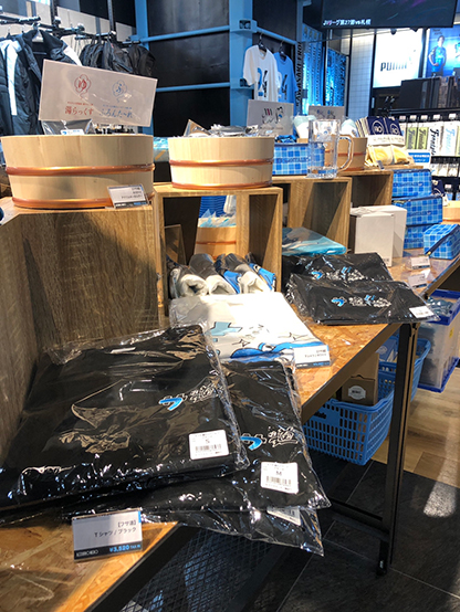 そんなホッと一息つくのにおすすめなのが、9月29日ヴィッセル神戸戦から販売しているサウナコラボグッズ!試合当日の等々力でも大大好評をいただき、一部商品が完売。翌日からはアズーロ・ネロでの販売もスタートしてます!!サウナ熱はまだ続いており、多くの「サウナー」の皆さんにご来店いただいてます。中には「3時間かけて来ました!」、「フロンターレは観たことないけど、このコラボは熱い!!」と普段フロンターレをあまり観ない方々も関心も多く寄せられており、我々ショップスタッフも驚いてます。