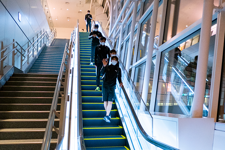 先週末のリーグ柏戦後、遠征メンバーはPCR検査を行い翌日全員の陰性を確認。翌日昼間は麻生グラウンドでのトレーニング。柏戦のスタメン組は軽めの調整、残りの選手はU-18と紅白戦を行いました。選手、スタッフら遠征チームは夜に再集合し、先発隊はひと足早く羽田空港に向かい荷物の運び出しに大忙し。集中開催になったことで海外遠征の回数自体は減りましたが、長期滞在なので練習着やシューズ類、練習器具、食料をといった荷物の量がものすごいことになっています。