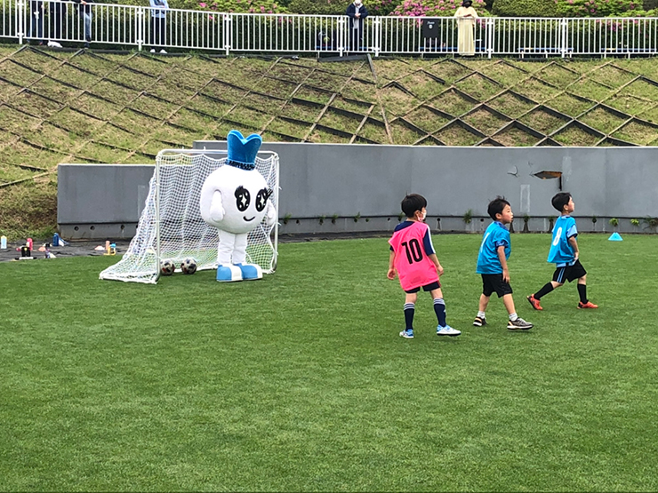 サッカー教室は、「年中・年長の部」と「小学1,2年生の部」の2回に分けて開催しました。どちらの回にも、ふろん太・カブレラ・ワルンタのマスコットトリオも登場。ミニゲームにはマスコットたちも参加して、子供たちと一緒にサッカーを楽しんでいました!ワルンタさんは気分次第でピッチに下りたり保護者の皆さんをいじったりでしたが、ふろん太とカブレラは割と本気でサッカーしていたようです。一緒にサッカーをしてくれたみんな、ふろん太とカブレラ(とワルンタ)が「たのしかったよ、ありがとう~!!」と言っていましたよ~。