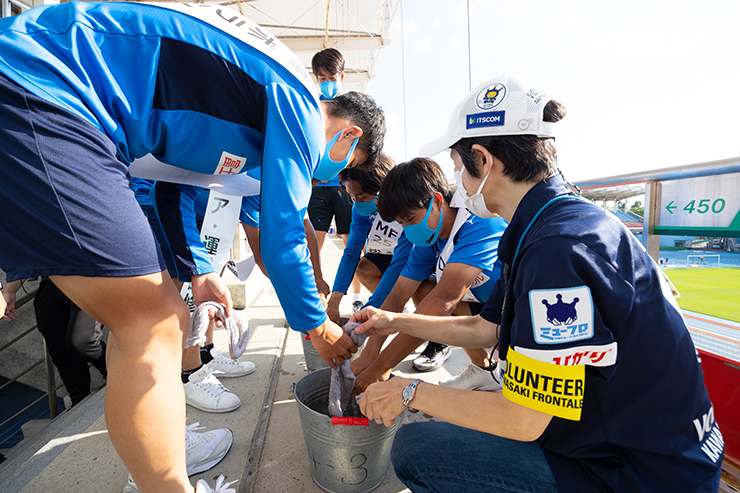 研修後に佐々木選手は、「普段当たり前のように開催されている試合でもたくさんの人の協力があってのことだと感じました。今回行った座席清掃では、1席1席を丁寧に拭くことで試合を見に来た人達が気持ちよく観戦できるのだと思いました。これを毎ホームゲームで見返りを求めず、川崎フロンターレのためにやってくださっている方達への感謝の想いが高まりました。当たり前のことを当たり前だと思わず、感謝の気持ちを持ってプレーしていきたいです。」
