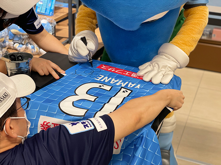 中にはリョウタが描いたふろん太の似顔絵Tシャツを持って来てくれた方も!!それにサインをしたふろん太も少し恥ずかしそうな様子。「麻生に行けるようになったらこのTシャツを持ってリョウタに見せに行きたい!!」と仰っていました。