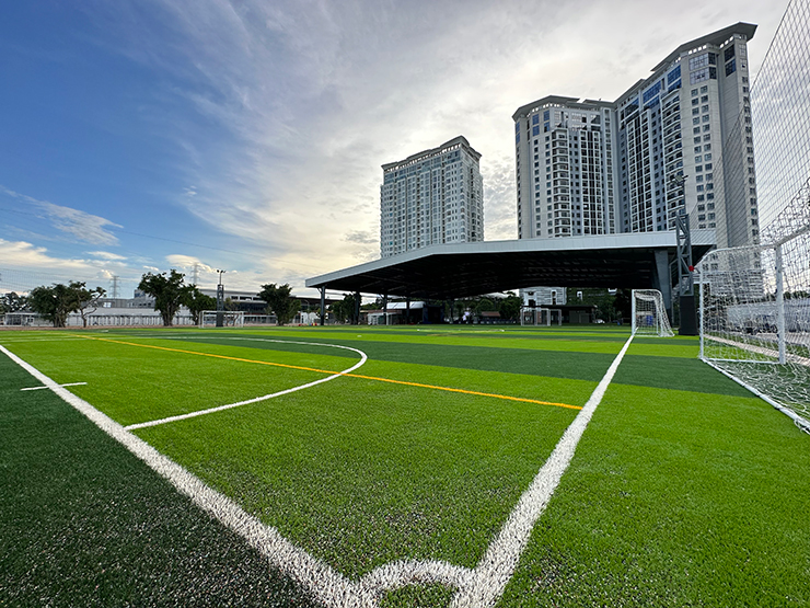 ベトナム南部の気候は東南アジア独特の厳しい日差しがあり、一年の半分を占める雨季にはスコールがあり、スポーツを行うには大きな課題となっています。しかし、「SORA gardens Links(ソラガーデンズ リンクス)」はそれらを解消する屋根付きの全天候型で、365日、快適にサッカーを楽しむことができる素晴らしい施設です。