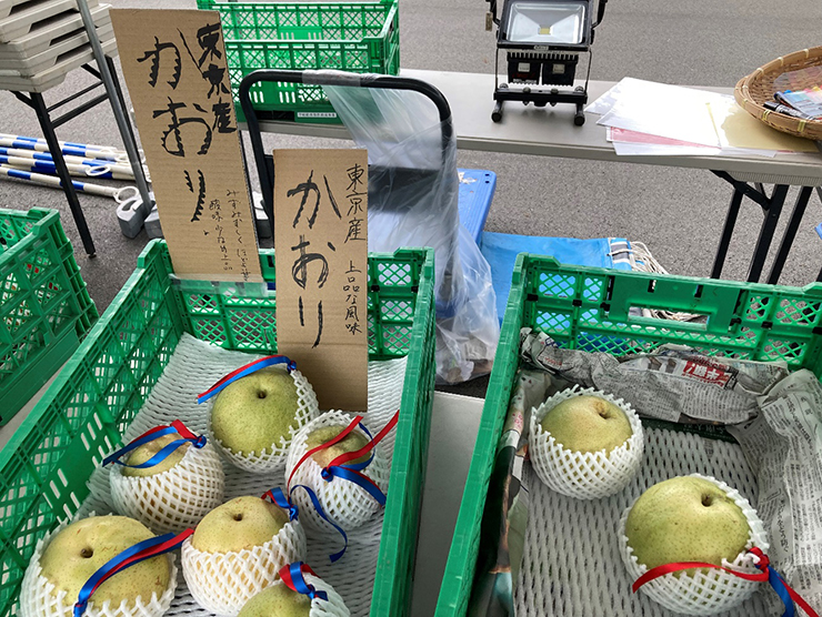 メインイベントの一つ、川崎と東京の多摩川梨のセット販売!!梨は年々収穫時期が早まっているとの事で、この梨販売は、ギリギリまで9/15に梨があるかどうかがわからず、販売出来るかどうかイベントの直前にやっと決定いたしました!!