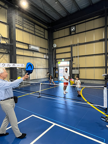 スタジアム内の屋内ウォームアップスペースでは、初心者の方でも気軽に楽しむことができる「ポールウォーキング」、「グラウンドゴルフ」を開催!!ポールウォーキングのコーチを務めていただいた平岡さんの丁寧なご指導のもと、参加された皆さんは綺麗にウォーキングをすることができていました。