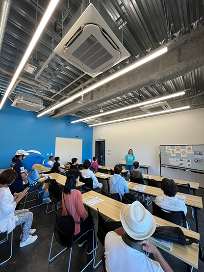 アリーナ外では、JAセレサ川崎による季節の野菜販売がスタート。開始前から大行列で、皆さん美味しそうな野菜をかごいっぱいにご購入いただきました!!ミーティングルームでの開催となった「健康声磨き」は、正しい発声法を学び、最後には川崎フロンターレの応援チャントを皆さんで歌いました。アカデミー給食室では、実食付きの健康レシピをご紹介。こちらも大盛況で立ち見が出るほどの人気ぶりでした。またスタジオAでは、フロンタウンフィットネスでお馴染みの和太鼓Fitとおしり体操の体験会を行い、気持ちよく汗を流す姿が見られました。