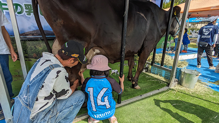 相澤良牧場さんの大迫力の牛さんの乳しぼりを体験しようと多くの人たちにご参加いただきました!