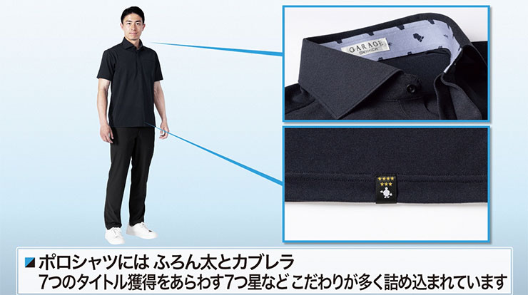 昨年の天皇杯優勝の星を加えた7つの星を携え、おなじみの「カブレラ」のピスネームが裾に光ります。そして「ふろん太」と「カブレラ」が襟の裏から、うだるような暑さにも負けない熱いサポートをしてくれます。着ているだけで、なんだかパワーが湧いてくる感じ...。ですよね!
