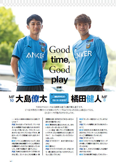今回のクロストークは大島僚太選手と橘田健人選手です。じつは本格的に中盤でコンビを組んでプレーするようになったのはここ最近という2人。どんなトークが飛び出すのでしょうか。