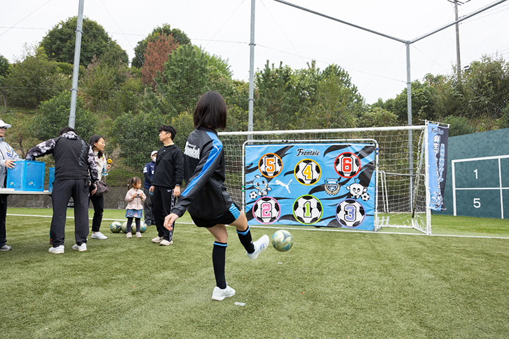 途中にはユイも登場し「俺も蹴る!」と言って、少し恥ずかしそうにしながらキックターゲットに飛び入り参加!さすがプロ!一番難しい6番の的を2球続けて命中させ、ファン・サポーターの皆さまからも歓声を受けていました!!