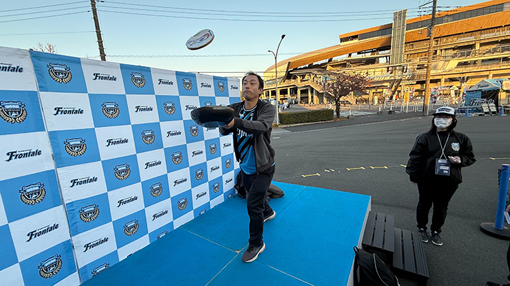 一見すると簡単そうな企画でしたが、参加してみると予想以上に難しかったのではないでしょうか!?見た目以上に重たい中華鍋と、綺麗に一回転させなければならない具材を上手く操るのは至難の業でしたが、前のチャレンジャーを分析して、3回全て成功し選手サイン入り色紙をゲットした方もいらっしゃいました!!