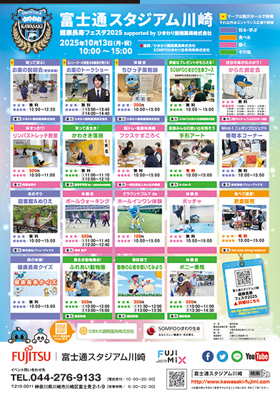 健康でいることの楽しさを、フロンターレと一緒に発見しませんか? さあ、10月13日は富士通スタジアム川崎で、笑顔いっぱいの健康フェスタを体感しましょう!