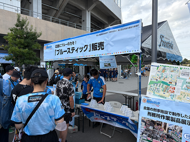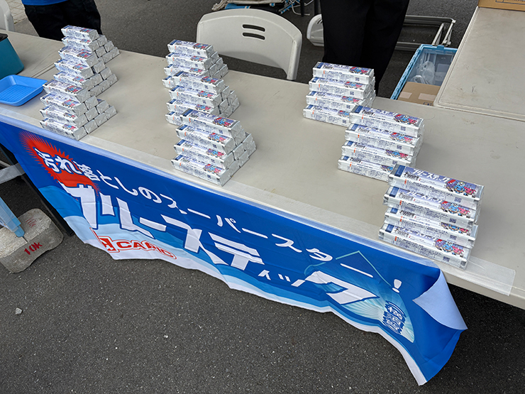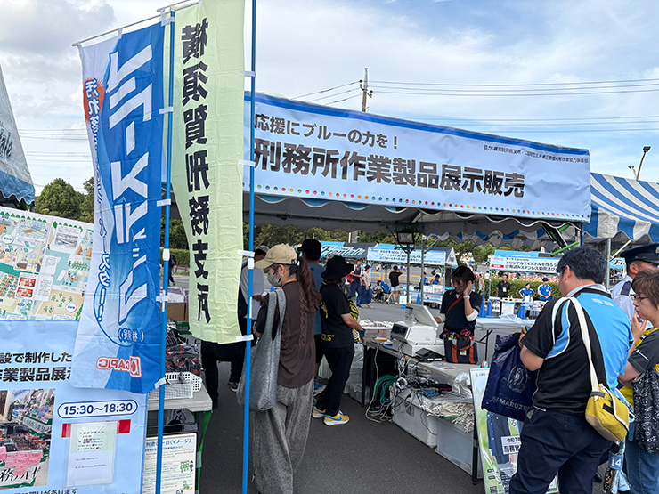同エリアで話題を集めたのが、人気の石けん「ブルースティック」とのコラボ販売ブースでした。横須賀刑務支所で作られるこの石けんは、誕生から30年以上、多くのファンに愛され続けるロングセラー!! 会場では「気になっていた!!」「早く使ってみたい!!」などといった声が次々とあがり、手にした方々の嬉しそうな笑顔が印象的でした。頑固な汚れも驚くほど落とせる実力に加え、販売の一部が社会貢献につながる点も多くの方の共感を呼び、併設された刑務所作業製品の展示・販売も含め、多くの来場者が足を止めていましたよ。レア商品を通じて、青き熱狂と社会への思いがつながった特別なブースとなりました。