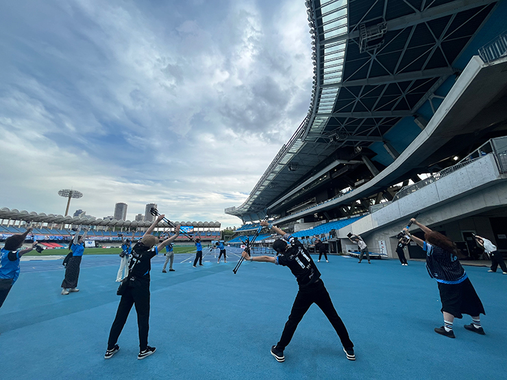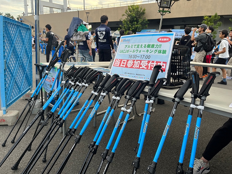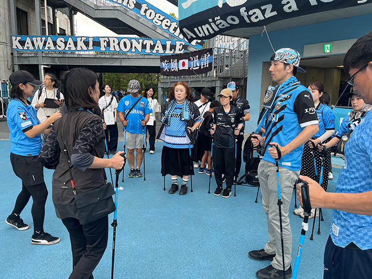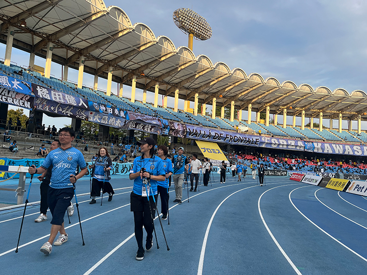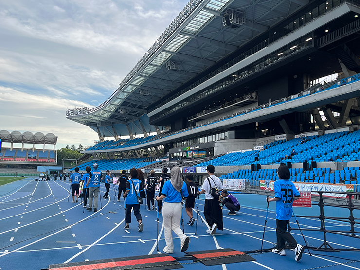唯一スタジアム内のトラックを使った特別体験「リサイクルアルミで支える健康力!! ポールウォーキング」が実施されました。コラボデザインの専用ポールを手に、参加者は専門インストラクターの丁寧な指導のもと、姿勢改善や運動効果を実感しながら歩くことができました。初めて挑戦する方も安心して参加できる工夫がされており、終始和やかな雰囲気。運動の楽しさや健康づくりの効果を体感していました。スタジアムならではの特別な空間でのウォーキングは、普段の運動とはひと味違う体験になったのではないでしょうか。