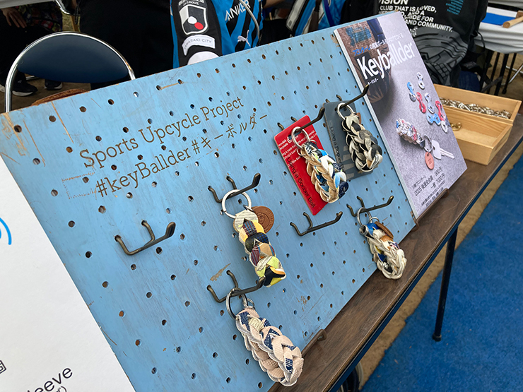 続いて「衣類回収で、来場者配布ユニフォームを作ろう!!」プロジェクト。会場のブースには多くの方が衣類を持ち寄ってくださり、思い出のつまった服やタオルが次々と集まりました。集められた衣類はケミカルリサイクルの力で原料へと生まれ変わり、11月8日のファジアーノ岡山戦で配布するベースボールユニフォームの一部として再登場予定です。「自分の服が未来のユニフォームになるなんて嬉しい!!」という声も多く、参加者の笑顔が印象的でした。回収を通じて“つながる未来”を実感できた取り組みとなりました。