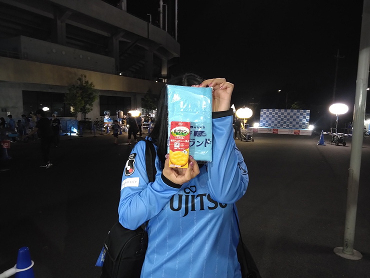 今回は特別衣装としてルヴァンプライム SS のレイを身につけて登場してくれました。サポーターの皆さま用のレイもご用意していたので、ふろん太もアロハポーズでノリノリ!! 多くの方に楽しんでいただきました!