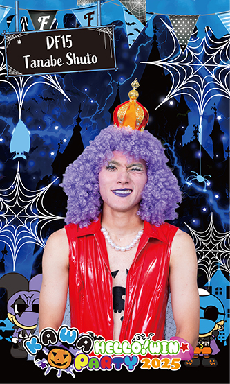昨年に続き、ド派手でインパクトのある仮装したシュウト。麻生でヒアリングした時には他の仮装でした。衣装が確定した数日後に「他の仮装でお願いします!」と連絡をいただき、急遽仮装を変更いたしました!!