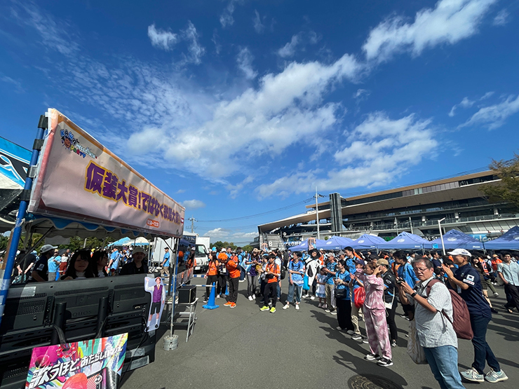 このブースでは、なんと全選手の中から好きなフレームを選んで撮影できる特別仕様。仮装した推し選手のフレームを手に取った瞬間から、サポーターの皆さんの表情は一気に笑顔に! まるで選手と一緒に写真を撮っているような気分を味わうことができ、終始にぎわいを見せていました。