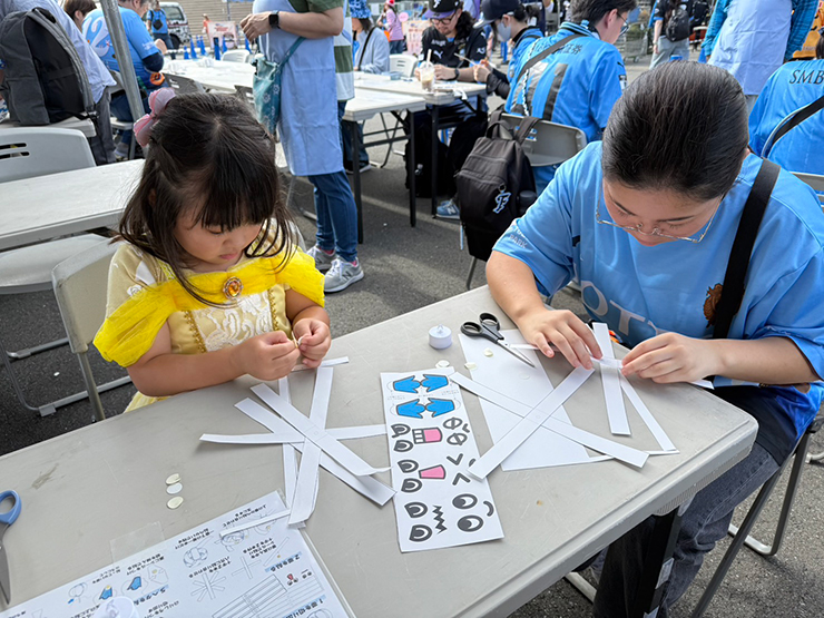 お子さんから大人の方まで、みんな真剣な表情ではさみを手に、「ここはもっとカブレラっぽく!」「目はこの角度だよね!」と盛り上がりながら作っている姿が印象的でした。
