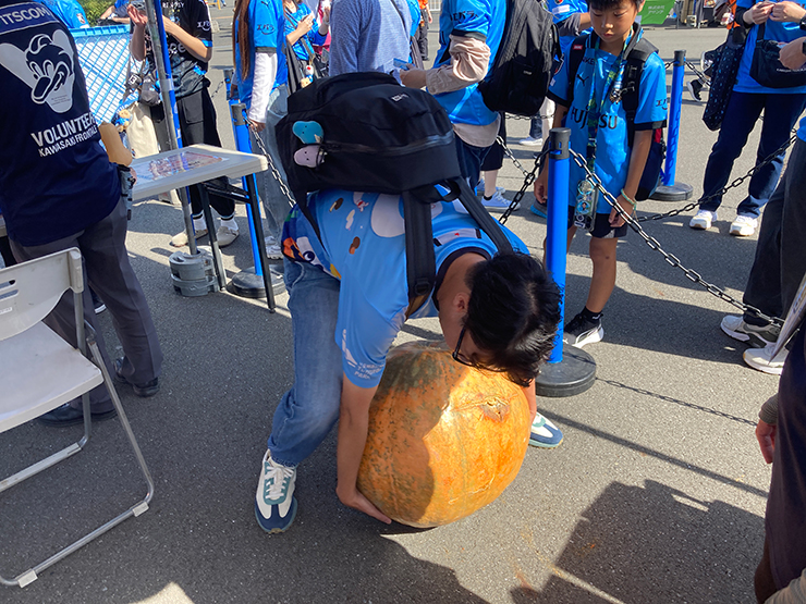 「かぼちゃの重さ当て」では、ピッタリ賞を受賞した方に川崎で採れた「バターナッツかぼちゃ」か「ハロウィンオリジナルのワルンタぬいぐるみ」をプレゼントしました!