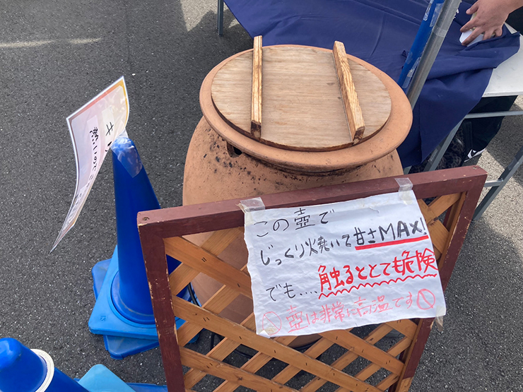 「つぼ焼き芋」はお店でお芋を焼くときに使用している壺を持ってきていただき、実際に壺を使用して温めていただきました。キッチンカー周辺に秋を感じさせるような焼き芋の匂いが広がっていましたよ!!
