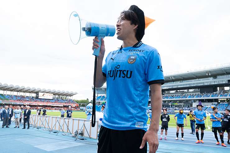 「熱い声援を送っていきましょう〜!!(阿井莉沙)」 - 2025-10-23(木)「多摩区民限定 多摩川ポールウォーキング&川崎フロンターレ観戦ツアー」開催!!