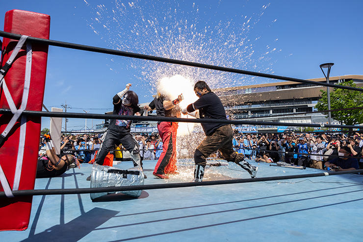 2020年、2022年と開催延期となり、昨年2024年5月11日(土)に初開催を果たしたこのイベント。盛り上がった場外フロンパークの中でもひと際大歓声に包まれていたのは、やはり「大仁田厚」さんです。